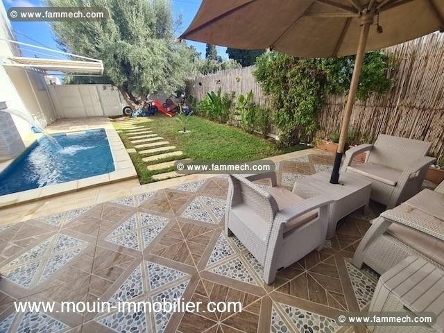 A vendre une coquette villa avec piscine richement meublée, située à Hammamet vers la route qui mène à Birbouregba.