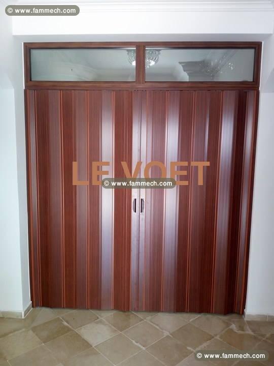 Séparation en aluminium ou en accordéon PVC aspect bois simple et vitrée