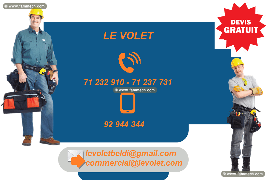 Tél 71238026 71232910 92944344 Mail commercial@levolet.com ou levoletbeldi@gmail.com