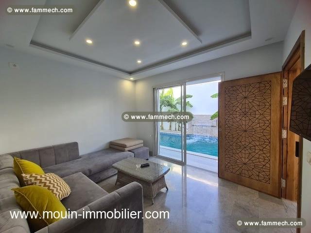 A louer à l’année une belle demeure de haut standing, récemment construite, située à Hammamet proche de Hotel Miramar, dans un quartier calme et résidentiel.
