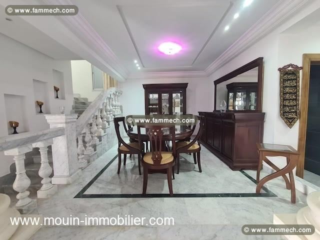 A louer à l'année une demeure de charme, non meublée, d’haut standing avec une belle architecture moderne, située à Hammamet dans un secteur calme et serein à 1Km environ du théâtre, des restaurants de renom et des hôtels Fourati, Miramar et Citronniers.