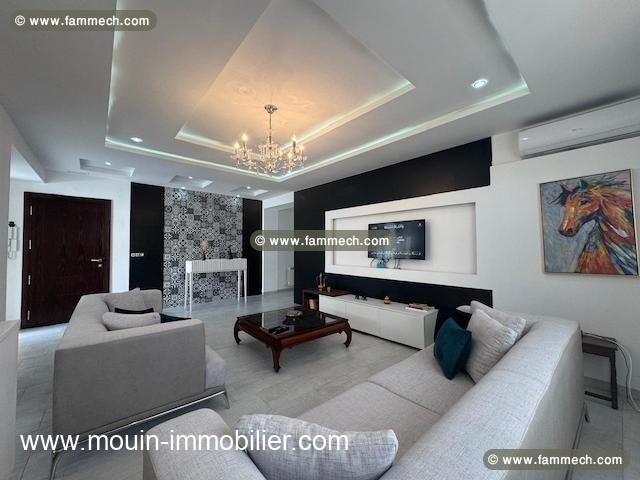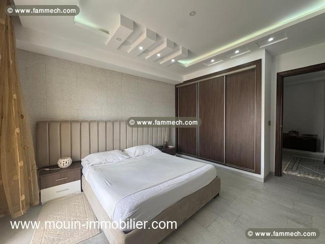 A louer à l’année un appartement d’haut standing, richement meublé et récemment construit, situé à Hammamet Nord – cité Kharrouba à 500m du carrefour market et 800m de la plage.