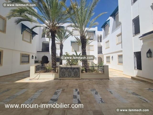 A louer à l’année un bel appartement situé au 1er étage d’une résidence à Hammamet Nord proche de Résidence Jannet et d’Hotel Nahrawes.