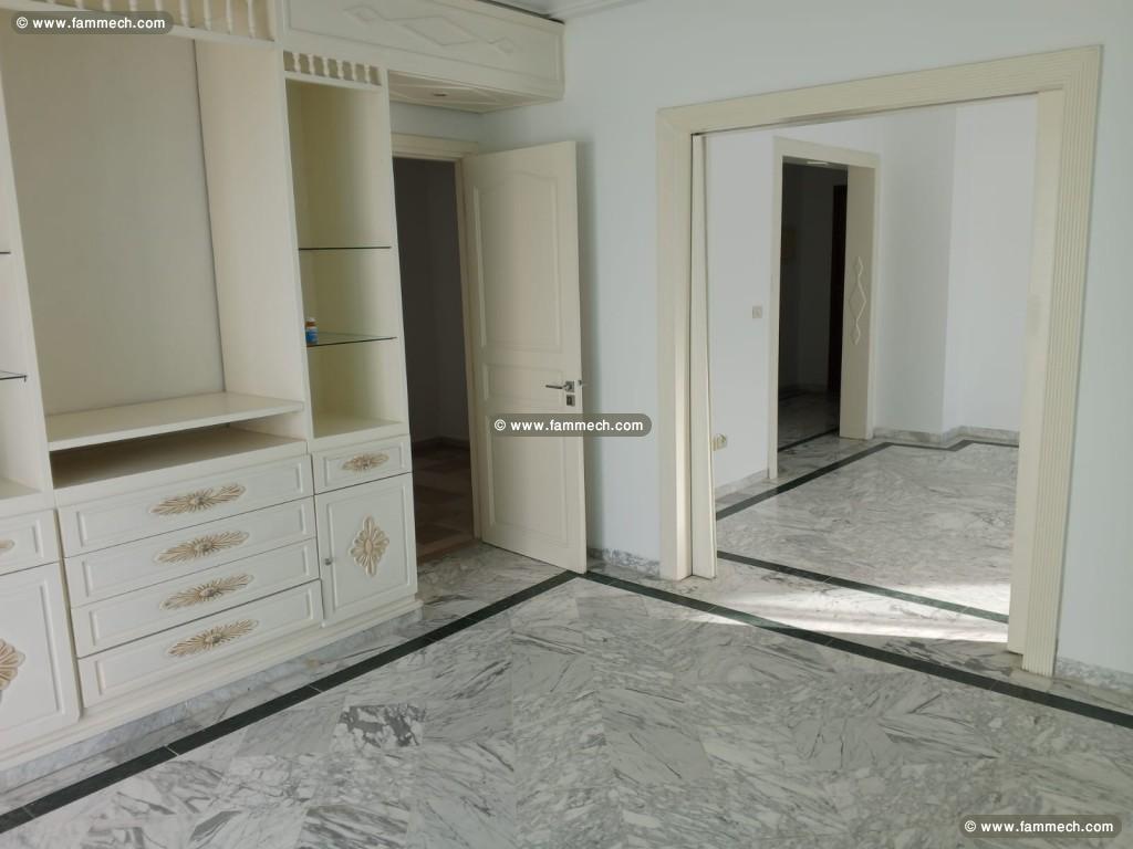 On vous propose à la location un spacieux appartement S+3 de Haut Standing très lumineux et aéré au 7ème étage avec une vu dégagée d’un immeuble gardé et sécurisé au coeur de la cité ElWahat L’Aouina, et au centre de toutes les commodités.