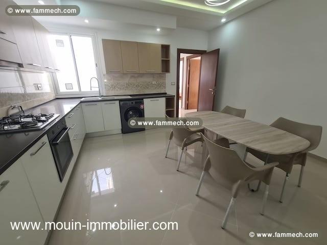 A louer à l’année un bel appartement de haut standing situé au 2ème étage d’un petit immeuble de type R+3, dans un quartier résidentiel à Baraket Essahel.