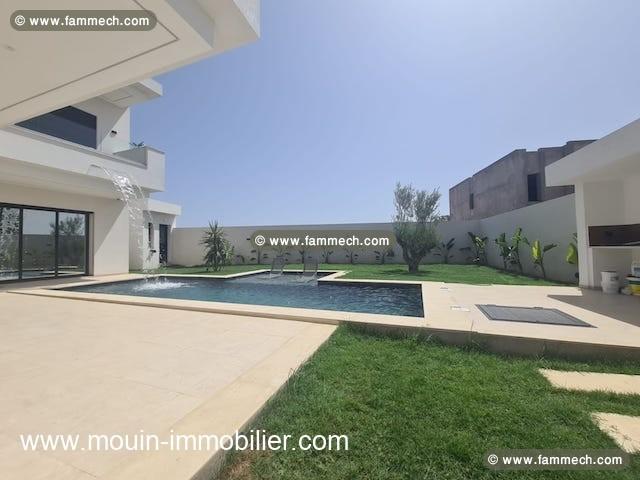 La villa est équipée de climatisation, chauffage central, un système d’alarme et des cameras de surveillance et bâtie avec des matériaux du 1er choix et de haute gamme ainsi que du double vitrage pour l’aluminium.