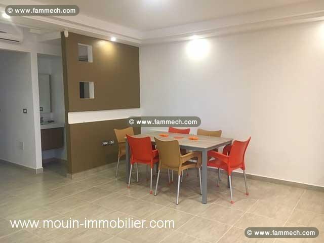 A louer à l'année un appartement de haut standing richement meublé, situé à l'étage dans un quartier résidentiel à Jinen Hammamet.