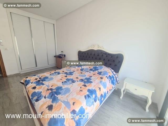 A louer à l’année un appartement d’haut standing situé au 1er étage d’un immeuble de type R+4 à Hammamet – Zone Théatre, proche de la plage et des hotels de renommés tel que Le Miramar et les orangers.