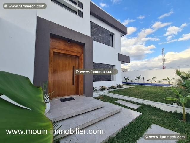 A vendre une villa avec piscine située à El Besbassia – Hammamet Sud à 170m de la route goudronnée et à 1,5Km de la route principale (La N1).
