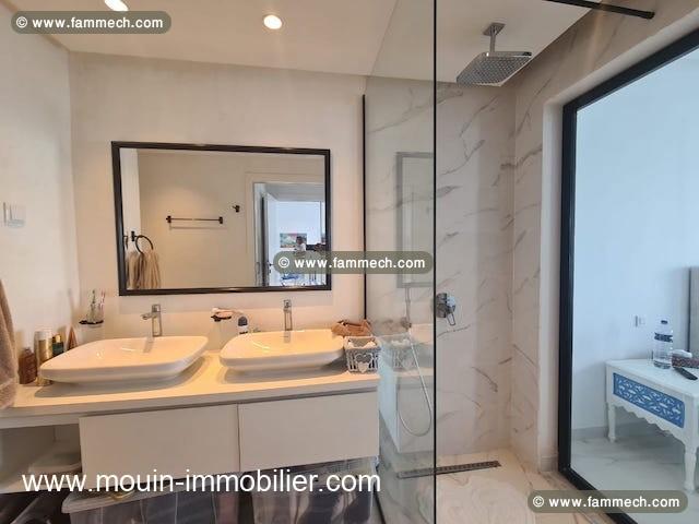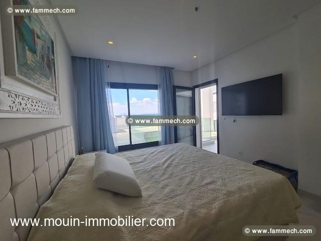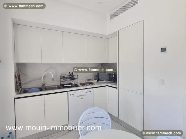 Il se trouve au rez-de-chaussée d’une résidence pieds dans l’eau à Hammamet, proche des commerces et commodités de vie.