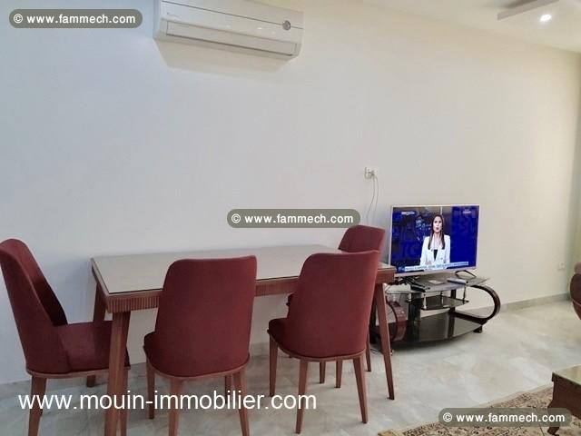 A louer à l'année un bel appartement meublé d'haut standing, situé au rez de chaussée d'une petite propriété à Hammamet zone corniche, à environ 200m de la plage.