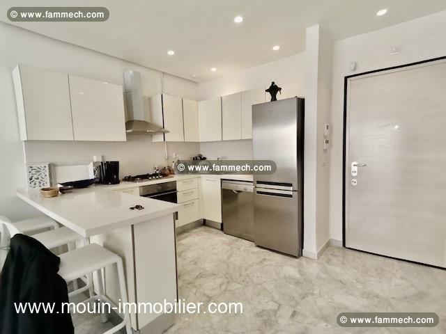 A vendre un bel appartement situé au 1er étage d’une résidence pieds dans l’eau à Hammamet – La Corniche, dans un quartier calme et résidentiel.