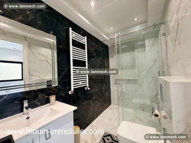 A louer à l’année un superbe appartement ayant une entrée indépendante, spacieux et bien lumineux. Il est situé au rdc d’un petit immeuble de type R+2 à Hammamet Nord proche des hôtels sultan et Badira dans un quartier calme et résidentiel.