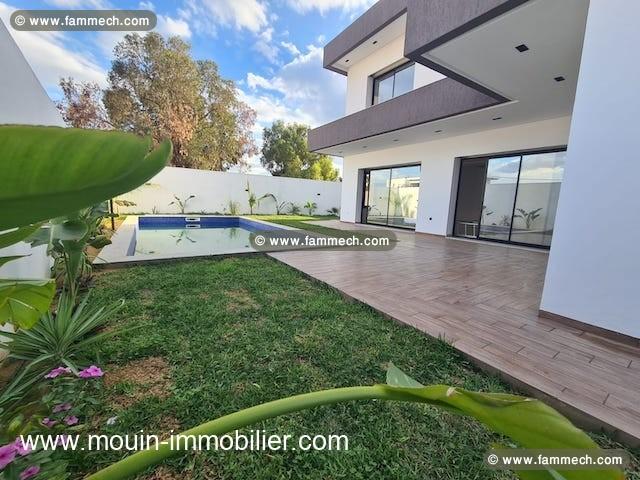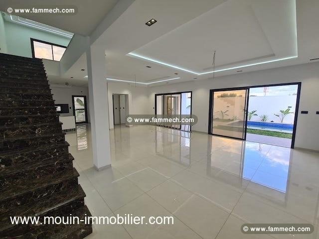 A vendre une villa avec piscine située à El Besbassia – Hammamet Sud à 170m de la route goudronnée et à 1,5Km de la route principale (La N1).