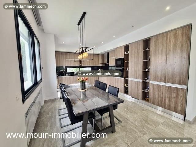 Bâtie sur un terrain clôturé qui s’étend sur 1000m2 avec des matériaux luxes et des sanitaires et boiserie de haute gamme.