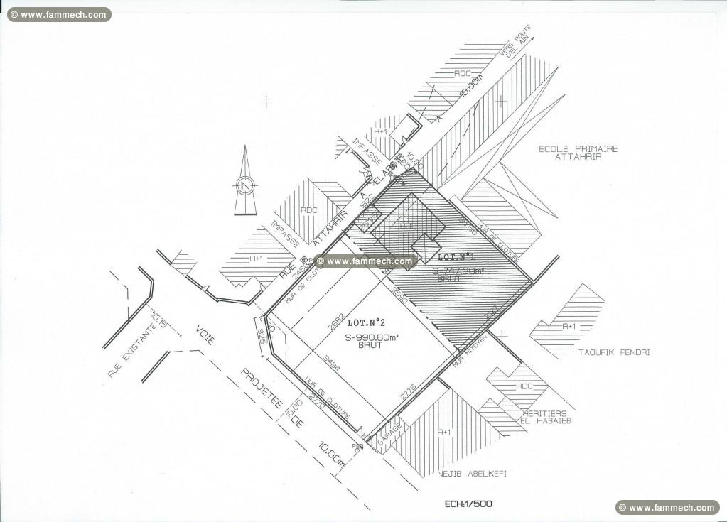 A vendre terrain de 990 m² Brut (811 m² net) (lot n°2) clôturé des 3 cotés Route El Ain Km2 à environ 200 mètres de la route principale (Zanket Ettahrir). Excellent emplacement, à proximité des écoles primaires, crèches (rawdaha), mosquée El Badr à 200 m, lycée 15 Novembre 1955-El 7ay (الحي) à 800 m, commerces (Monoprix) à 400 m, clinique El Alya à 300 m et Hôpital Hédi Chaker et de l'hôpital Habib Bourguiba à 1000 m. Ce terrain est accessible par deux voies de la route principale (Route EL AIN). Possibilité de bâtir jusqu’à R+2. Titre arabe (Rasm) en règle. Le prix est négociable dans la limite du raisonnable. Pour plus d’information appeler le : 52503068.